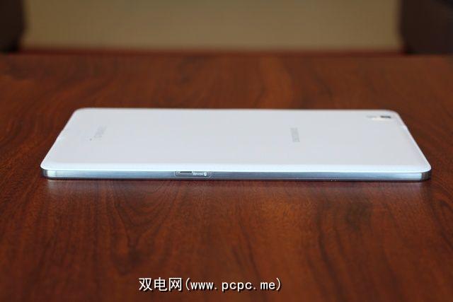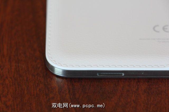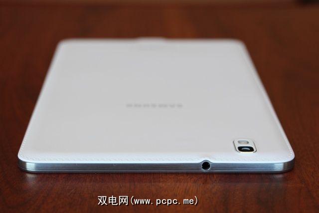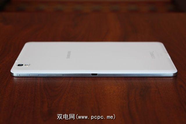在很多方面,三星Galaxy Tab Pro看起来像我们评测过的Galaxy Note 3。尽管它的屏幕更大,但实际上其他所有内容都是相同的。底部有一个主页按钮和两个电容按钮,两个摄像头的位置相同,甚至塑料后盖上的皮革纹理相同,边框周围有假缝线。但是,它不包括Note所著的手写笔。