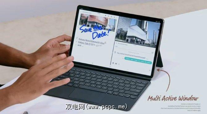 平板电脑配有可快速按动的键盘。键盘本身具有带有多个手指手势支持的触控板。在平板电脑上,您可以通过将屏幕分成三个窗口来同时运行三个应用程序,以实现更好的多任务处理。