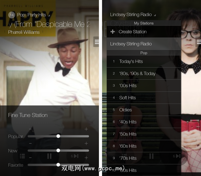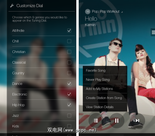 Pandora的方法可以有用,但是Milk的方法更加有趣和简单。您可以在Milk上更快地在频道之间进行切换,而且访问起来也非常容易:只需点按屏幕,就会出现转盘。另外,您还可以通过点击左上角的流派列表来创建围绕Milk上特定艺术家的电台。
