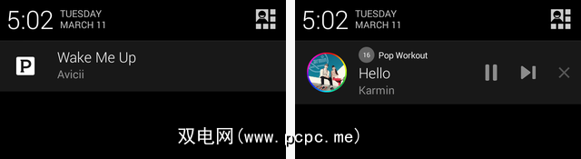牛奶在通知部门也很明显。自Android 4.2起,Pandora尚未使用可操作的通知,而Milk则具有暂停,下一步和退出按钮,以及专辑封面和电台名称。