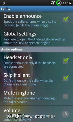 Sanity可以让您设置通话音量控制,如果您将它调到上一个通话中,则可以避免通话声音过大。此外,您可以为头戴式耳机上收到的呼叫设置不同的音量级别。保护您的耳朵!如果您经常在手机上听音乐,则可以在通话时自动确保这些声音被静音。