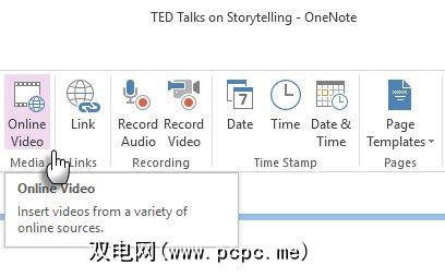 注意: OneNote Online还不支持插入在线视频。微软说这是一个预期的功能。