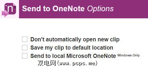 替代方法:还有第三方Send to OneNote Chrome扩展程序。您可以从右键单击菜单将网页的一部分或整个页面剪切到OneNote。它带有三个选项: