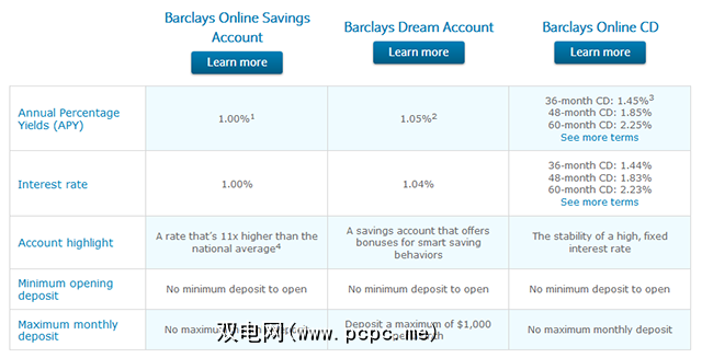 财务利率: Barclays提供:CD账户APY在0.35%到2.25%之间,即每天复利;储蓄账户APY为1.00%;如果您连续六个月存入资金,那么梦网的APY储蓄账户的APY为1.05%,而利息利息为2.5%。开设任何帐户都没有最低存款要求。