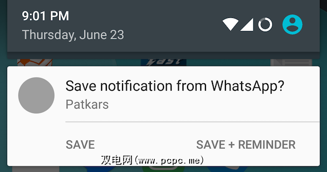 这是Boomerang的工作。每当您从某些Boomerang应用程序收到新通知时,它将显示两个选项:“保存"或“保存+提醒"。顾名思义,前者只是保存了通知,以便您以后可以查看,而后者则保存并添加了提醒。