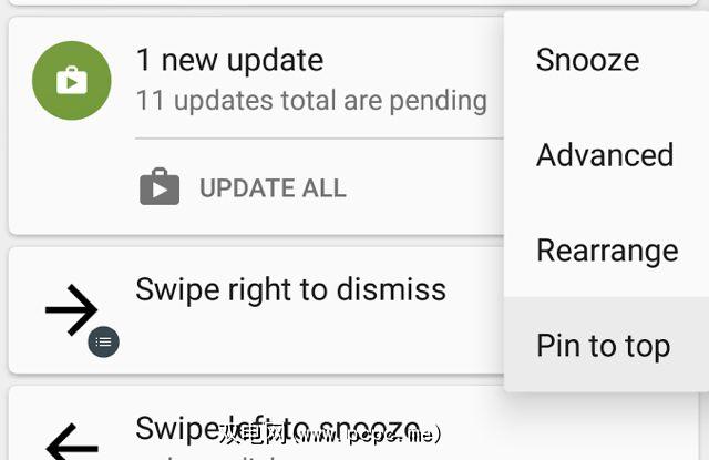 如果您不想钉住某个项目,但在您将其关闭之前仍能看到它,请长按任何通知以重新排列您看到的顺序。
