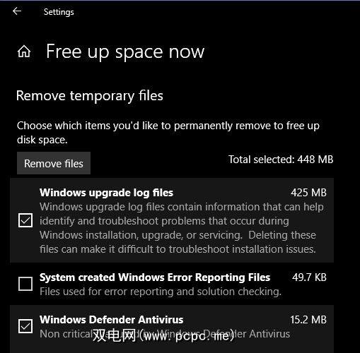 选中所有要清理的框,确认将在顶部节省多少空间。 ,然后点击删除文件按钮。