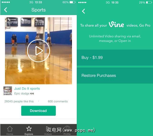 此应用程序有一个应用内购买称为“ Vine video export"($ 1.99)。如果您想通过iMessage或电子邮件共享下载的Vine视频,则必须付费。可以肯定地说,您不需要此次购买。与您共享视频的其他人仍然必须下载它们,可以使用上述任何一种方法进行下载。