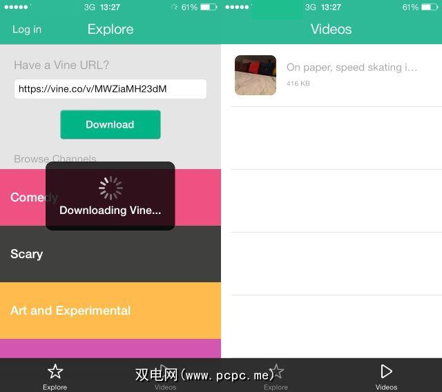 如果您将Vine URL复制到剪贴板,则下一个屏幕会自动显示下载选项。该应用程序具有“视频"标签,您可以在其中查看所有已保存的视频。与其他媒体播放器不同,VineDrive会自动循环播放Vine视频。