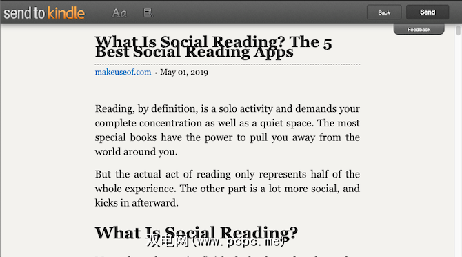 这是为那些发现Push to Kindle功能集限制的用户提供的。 “发送至阅读器"是一种用于在Kindle上阅读文章的更详尽的解决方案。