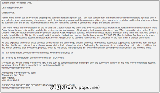 如果您拥有任意时间的电子邮件帐户,您一定会知道诈骗者使用的通信类型。通常,他们以内战,家庭死亡,政府干预或医疗问题为由,寻求帮助,将您的财产转移到新的地方。
