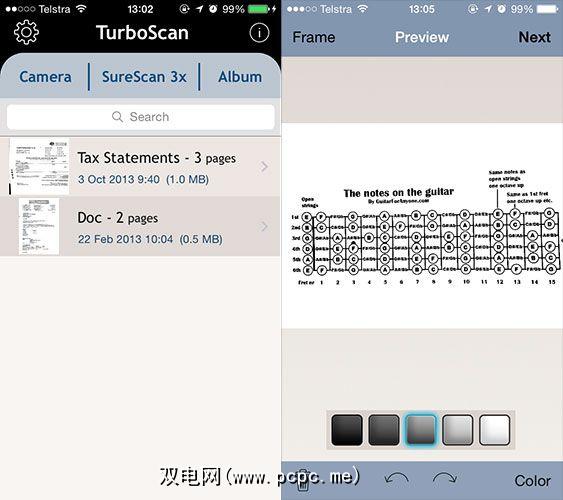 我一直对TurboScan情有独钟(1.99美元),预算扫描仪应用程序,可以提供出色的结果。它允许您创建多页PDF以及JPEG。虽然界面不多,但边缘检测和整体扫描质量(具有可调整的对比度设置)都非常出色,并且具有“ SureScan 3x"功能,可合并三种曝光,特别是在弱光下方便。 p>
