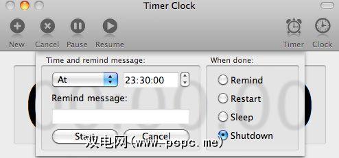 所有这些任务都是通过以下两种方式之一进行调度的。计时器时钟可让您在给定时间安排的操作(例如,使用24小时惯例在23:30:00关机,如上面的屏幕快照所示)。或者,您可以指定触发操作的持续时间(例如,在1小时10分钟内进入睡眠状态)。
