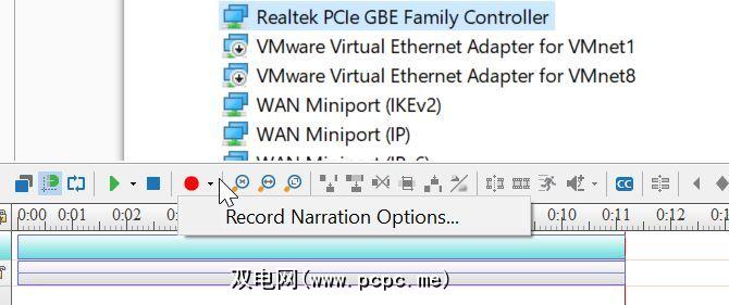如果您在录制视频时遇到任何问题,可以通过单击旁白图标旁边的下拉菜单,然后单击录制旁白选项,在ActivePresenter中检查视频设置。 p>