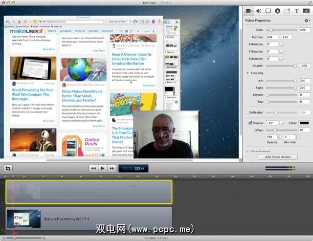 有效的截屏需要近摄和平移。 ScreenFlow包含视频属性功能,可用于放大/缩小以及在录制的屏幕的不同部分之间移动。它还包括用于添加标注,文本和其他媒体的功能。视频和音频片段也可以修剪,分组,加速和减慢,并可以添加定格帧。下面的视频更详细地说明了编辑功能。