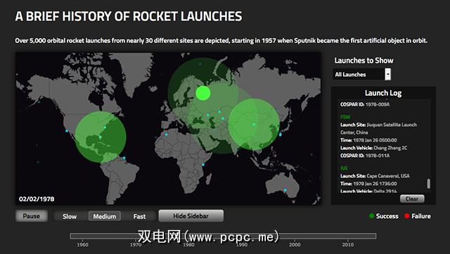 直到1950年代,人类才将卫星发射到轨道上,但是我们从那时起,我肯定发射了一堆火箭。如果您想知道多少,可以在此站点查看自早期以来每次火箭发射发生的位置。