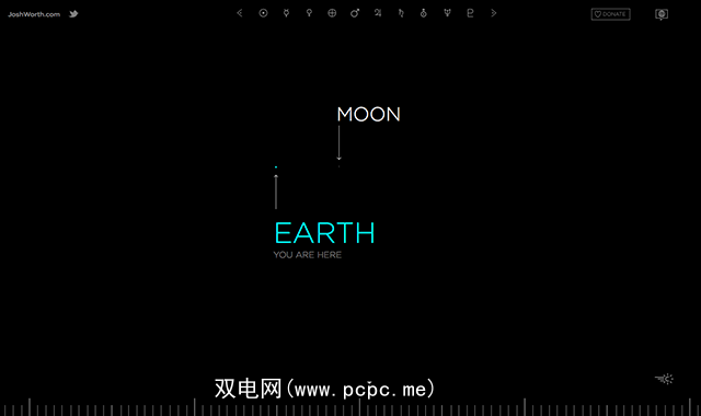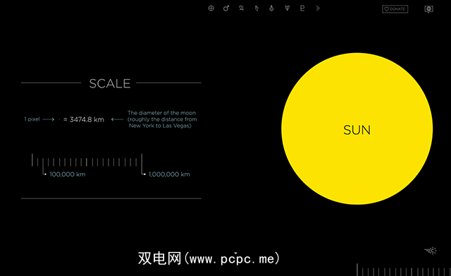 该站点可让您从太阳滚动到太阳系中所有已知的行星。但这不像您之前看到的那些照片:一切都是按比例缩放的,也就是说,大部分只是空白空间。仅仅到达水星似乎要花一辈子,老实说:我在到达土星之前就放弃了。您能做得更好吗?