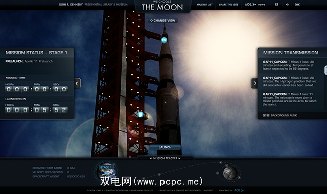 但是我们确实做到了,而且我们选择月球可以帮助您重温发生的那一天。您会听到当天的实际音频,并看到计算机模拟的火箭穿越太空路径的再现。还有沿途可以浏览的照片和录像。