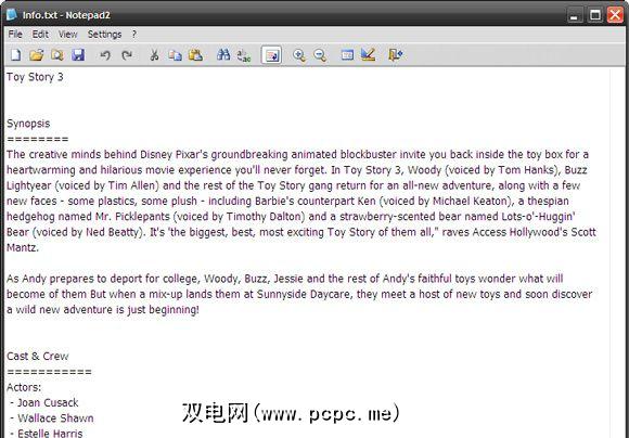 电影的详细信息收集在单个易于阅读的文本文件(Info.txt)中,您可以与影片的视频文件一起存储。该信息包括简介,演员和工作人员详细信息,以及诸如运行时长度,视频和音频详细信息之类的重要信息。