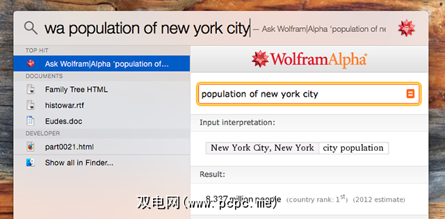 Apple不仅为Spotlight提供了许多在线功能,而且还改善了其离线功能。 OS X Yosemite最好的新增功能之一就是能够将Spotlight用作转换器–就像在Google中一样输入您的转换,您会在屏幕中间看到结果。