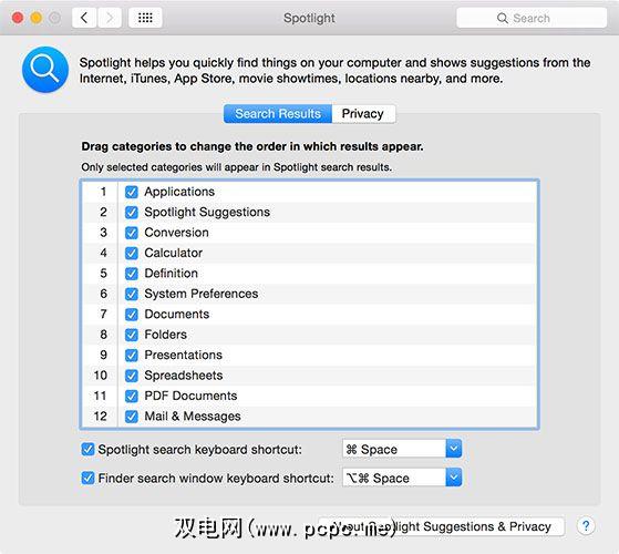 放松一下–我们知道您不希望在朋友面前搜索兴奋剂节拍时出现大量的Power Rangers情节的后目录,Apple也是如此。转到系统偏好设置> Spotlight ,然后在搜索结果下关闭各种功能,例如电影或图像。要更改结果显示的顺序,请点击并将其拖到您希望其显示的位置(尽管我们始终建议将 Applications 保留在堆栈顶部)。