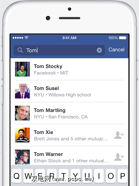 这是最基本的搜索:在搜索栏中输入朋友的名字。结果将找到您在Facebook上结识的人,朋友的朋友,名人等等,希望以正确的顺序找到您要找的人。