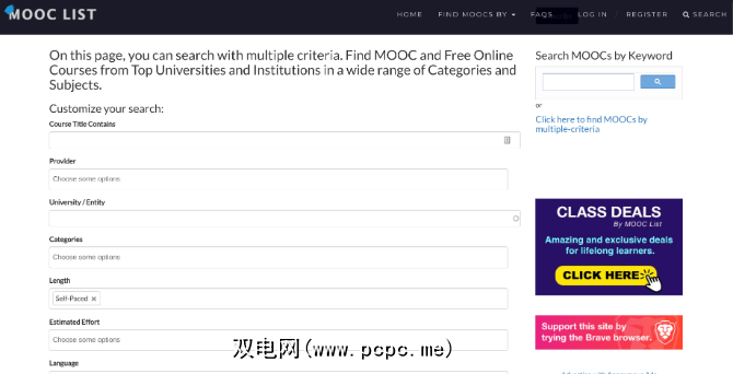 如果您想通过各种参数搜索或过滤结果,它的性能将不会比MOOC-List更好。该网站具有多种条件搜索,可让您根据以下条件找到任何在线课程: