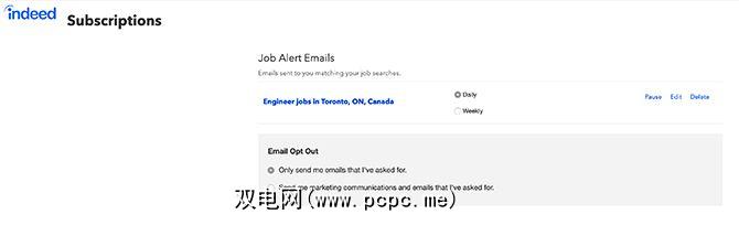 执行此操作后,将弹出“订阅"页面。您可以在此处编辑工作警报,更改其频率,暂停它们或删除。非常简单。
