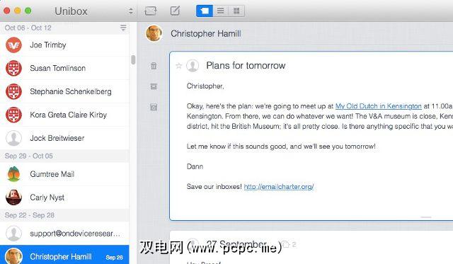 话虽如此,任何寻找通过联系人组织邮件的客户端的人都应该签出Unibox。该界面非常小巧,不会妨碍您安装,设置和运行。