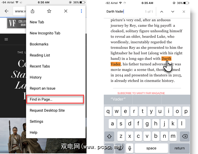 在台式机上,只需按 Ctrl + F 或进入菜单,然后点击查找,然后在框中输入关键字。但是移动操作系统与台式机操作系统在两个关键方面有所不同:缺少界面空间和缺少键盘。