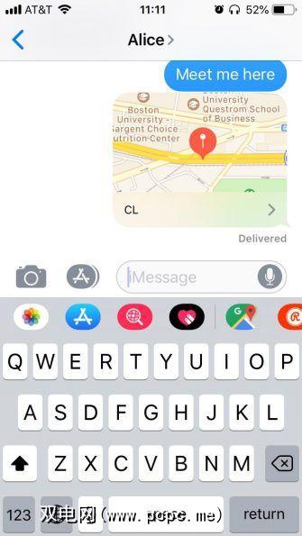 这将向您的朋友发送固定位置的Apple Maps简介,以便最终使两个人团聚半火锅。
