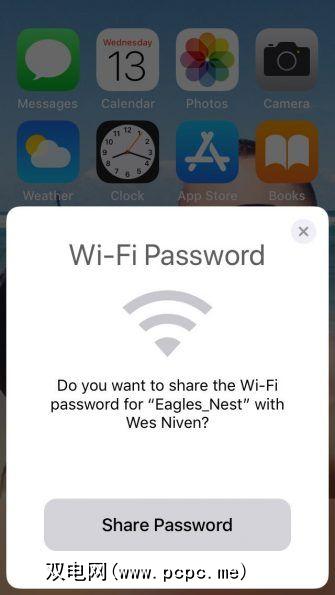 只要两部iPhone都具有Wi-Fi和蓝牙功能并运行iOS 11或更高版本,您甚至可以在不知道密码的情况下共享密码: