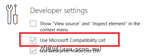 要禁用该列表,请转到开发者设置>使用Microsoft兼容性列表。是的,您仍然可能会遇到无法加载的奇数页面的情况,但是如果那样糟糕,您可能还是不想浪费时间。