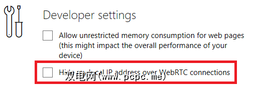 如果您转到开发者设置>通过WebRTC连接隐藏我的本地IP地址,则可以快速修复缺陷。