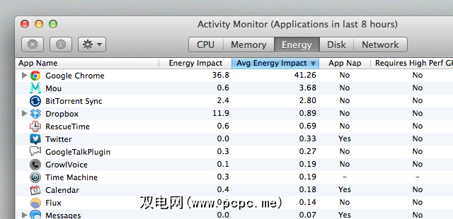 这是Apple努力延长Mac电池寿命的一部分。这项工作还包括App Nap(使您当前不使用的应用程序进入睡眠状态),以及新的Activity Monitor(活动监视器),其中包括一个专门用于监视每个应用程序的能源使用量的选项卡: