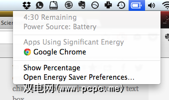 这里有一个您可能不会立即注意到的功能。单击电池,您的Mac会告诉您哪些应用正在消耗“重要能量":