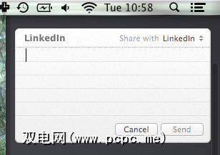 对于大多数LinkedIn来说,这是一台垃圾邮件机,但对于少数LinkedIn,则是一个正常运行的社交网络。如果您在后者中,并且希望从通知中心发布,请将LinkedIn添加到OS X中的“ Web帐户"部分,您会在通知中心找到用于发布消息的表单。