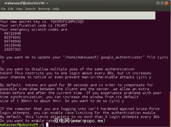 下一步将最终将您的帐户链接到Google Authenticator。将需要为所有登录到系统的用户运行此步骤。我们的示例只有一个用户 PCPC.me 。但是,这些步骤对于您系统上的任何其他用户都是相同的。