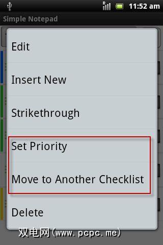 您可以将项目转移到轻触从一个列表到另一个列表的清单。清单还带有与注释相同的菜单选项。另一个 Lock 功能可停止对列表的进一步编辑。