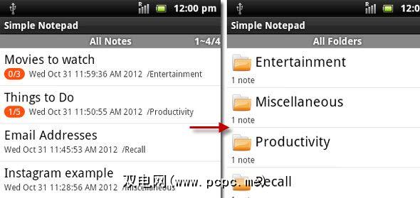 组织良好,您无需搜索和排序笔记和清单。但是,如果需要这样做,Simple Notepad可为您提供很多选择来寻找针头。其中包括–按颜色排序。