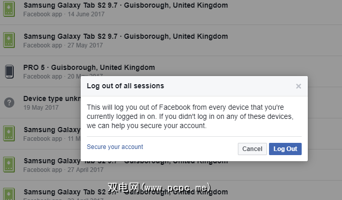 要开始使用,请在安全性和登录中展开您登录的地方视图。 。这不仅说明了Facebook记录了有关您的信息多少,而且还说明了使用您的帐户的某人可能收集了哪些信息。使用退出所有会话按钮删除此数据是个好主意。