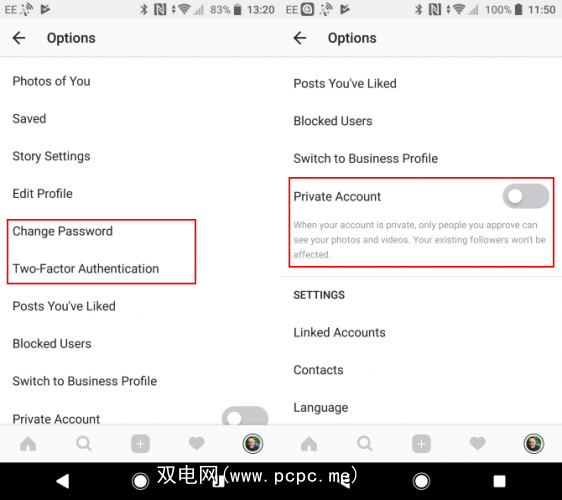打开选项菜单,找到更改密码选项,然后选择安全的密码。同时,为了获得更多的隐私,您可以轻按私人帐户开关。现有的关注者将保留下来,除非您批准,否则任何新朋友都无法看到您的照片。如果您的孩子正在使用Instagram,则应坚持启用这些设置。也可以禁用评论,并启用自动和手动过滤器以限制评论者使用的语言。