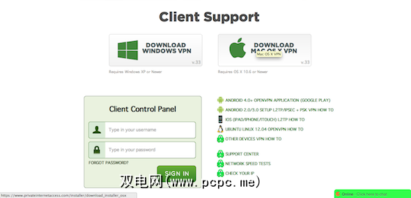 获得OS X客户很容易。导航到“私有Internet访问"下载页面,然后单击“下载Mac OS X VPN"。