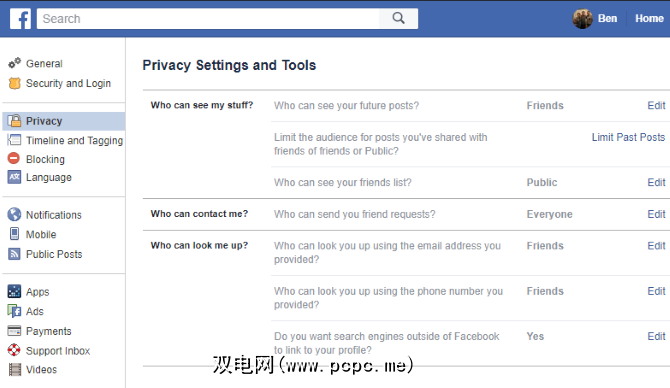 在Facebook上,访问“设置"页面,然后单击左侧栏中的隐私。在此处查看设置,以更改谁可以看到您的帖子,谁可以与您联系以及谁可以使用搜索查找您。您还应该查看时间轴和标签标签,以更改可以在时间轴上发帖的人,并要求审阅新帖。