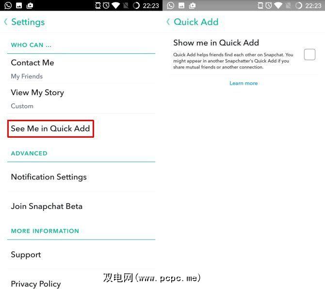 要关闭此功能,请转到“设置"菜单。向下滚动并选择在快速添加中看到我,然后取消选中该框。