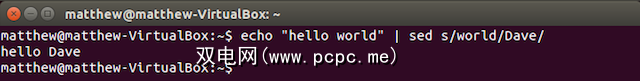 最基本的Sed脚本是Hello World脚本。在这里,我们使用Unix Echo实用程序(仅输出字符串)来打印“ Hello World"。但是,我们将其发送给Sed,并告诉它用“ Dave"代替“ World"。自我解释的东西。