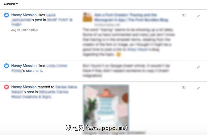 您还可以使用活动日志来区分内容,而不必返回到某个人的个人资料或页面。