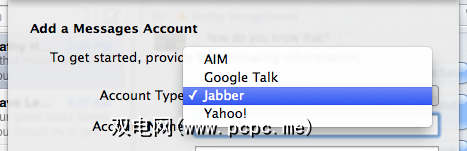 从这里您将看到一个下拉菜单,其中三个选项与以上。您还将看到Jabber,因此使用它。