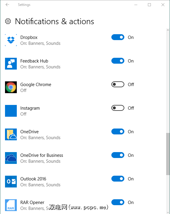 如果您正在演示,并且只想在有限的时间内关闭所有通知,请转到设置通知和操作并关闭从应用程序和其他发件人处获取通知。