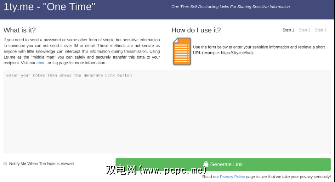 有一个选项可以在打开链接时得到通知。并且1ty.me在打开链接之前警告用户它将被永久破坏,因此他们应该立即复制并粘贴敏感信息。